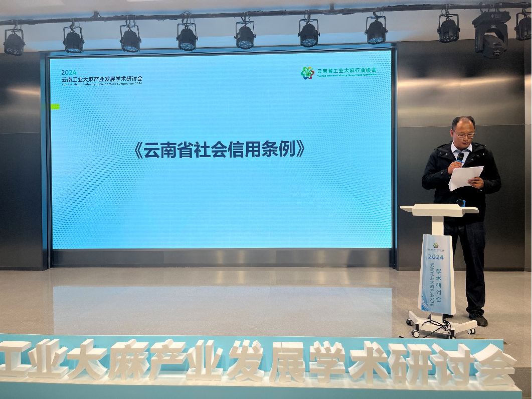云南省工业大麻行业协会在昆明举办“2024云南工业大麻产业发展学术研讨会”。为进一步加强行业信用体系建设,促进工业大麻产业的规范化、诚信化管理发展,会上对《云南省社会信用条例》进行了宣讲。